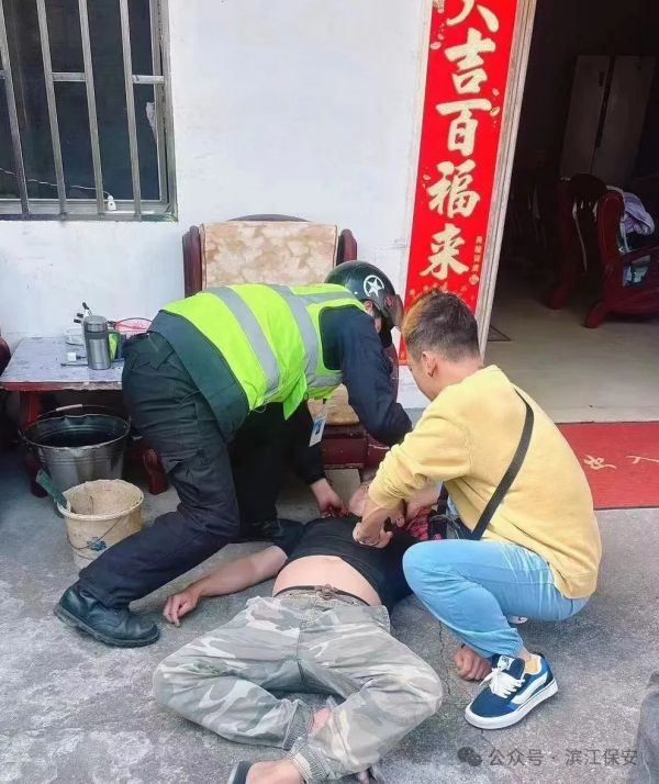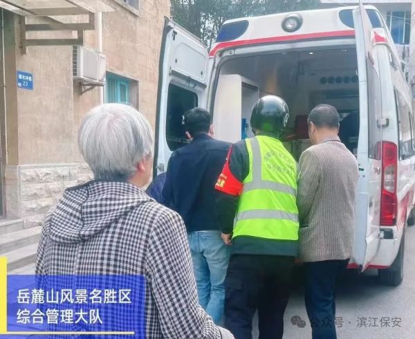 2024年3月20日15時(shí)39分,濱江保安公司岳麓山風(fēng)景名勝區(qū)綜合管理大隊(duì)的馮輝和朱茂輝正準(zhǔn)備結(jié)束上午的勤務(wù),當(dāng)他們行至尋麓悠然之家民宿附近時(shí),一位頭發(fā)花白的老婦人急切地向他們求助。她描述兒子突然在家中不省人事,而兒媳又不在場,自己不知所措。面對驚慌失措的老人,兩名隊(duì)員安撫她的情緒,并緊隨其后前往事發(fā)地點(diǎn)。